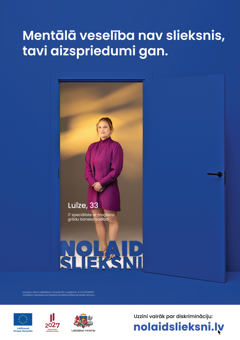 Kampaņu “Nolaid slieksni” īsteno Labklājības ministrija ESF+ projekta Nr. 4.3.4.3./1/24/I/001 “Izvērtējumi pierādījumos balstītas sociālās politikas pilnveidei” ietvaros.